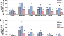 From an epidemiological viewpoint, a risk factor perspective is more closely related to incidence than mortality trends. However, due to the absence of national cancer registers and the acceptable quality of mortality statistics in both countries (civil registration coverage of cause-of-death above 90%)30, mortality rates seem to be the most reliable option in Latin American cancer epidemiology research. An additional limitation was that the GC analysis was performed without distinguishing subtypes (cardiac and non-cardiac) when specific etiological pathways are recognized for each one. Concluding, our findings showed an overall favorable decreasing trend for GC mortality risk in the 1990–2015 period for Argentina and Chile. However, we emphasize that GC remains a significant health problem in the Southern Cone region, especially for Chile, where the burden of mortality (measured by age-, cohort-, and period-specific rates) was noticeably high. Several underlying factors that could explain similarities and differences between countries were pointed out and discussed by using the APC perspective; nonetheless, the stagnation of the cohort effect in women should be further evaluated. Thus, increased efforts focused on the high-risk population are needed in Chile, including cost-effective population-based interventions, such as H. pylori and endoscopic screening, for GC prevention and treatment, respectively31. At the same time, in both countries, public health interventions aimed at reducing the prevalence of potentially modifiable risk factors (such as tobacco use, unhealthy dietary intake, and alcohol consumption) should be maintained and strengthened over time32, considering gender imbalance when these interventions are targeting GC burden reduction. Finally, we highlight that the present analytical approach may be a valuable tool to be replicated in other countries with no population-based cancer registries and acceptable mortality data.