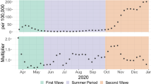 In the section below “Definition of areas with and without controlled cases of COVID-19”, each country/region was classified into a binary class: either controlled or not controlled areas for COVID-19. The proposed method allows for insights regarding the association of the number of deaths and staying at home levels between countries/regions with similar/different degrees of COVID-19 control. Assumptions related to consistency, efficiency, and asymptotic normality of the ordinary least squares, in the context of time series regression, can be found in66. Since we are comparing many time series, to avoid any problem with spurious regression, we performed a cointegration test between the response and covariates. In this context, this is equivalent to testing the stationarity of \(\varepsilon_{t}\), which was done by performing the Phillips-Perron test. Residual analysis is of utmost importance in linear regression, especially in the context of small samples. The steps and tests performed in the residual analysis are described in the statistical analysis section.