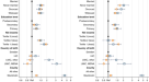 The smallest risk ratio for age (per 10 years) for COVID-19 mortality was observed in Ukraine with 1.55 (1.20–2.00; Fig. 1 and Supplementary Table 2Sa). This means that the risk of COVID-19 mortality in women (the reference category for the variable sex) increased by a factor of 1.55 times if age increased by 10 years. The next smallest age dependency was found in the USA with a risk ratio of 2.77 (2.73–2.82). A remarkably wide range of the estimates of age dependency was noted with the largest risk ratio observed in Switzerland (5.66; 5.36–6.00). The risk ratios for Belgium (3.98; 3.70–4.28), and Austria (4.07; 3.85–4.31) were closest to the median of the 16 countries.
