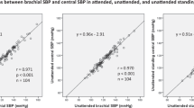 Office BP was measured using a Welch Allyn Vital Signs 6000 series (model 901060, Welch Allyn, Skaneateles Falls) oscillometric BP monitor. Participants were fitted with an appropriate size BP cuff on the non-dominant arm (bladder length: 75–100% of the upper arm circumference, and bladder width: 37–50% of the upper arm circumference). All participants then had seated office BP taken after resting quietly for 5 min, with arm supported on a table at the level of the heart, back supported, both feet resting flat on the ground (uncrossed) and were instructed to stay silent during 5-min rest period prior to BP measurement, and during all sequential BP measurements, according to the current practice guidelines1. Participants had been asked to refrain from caffeine, exercise, and smoking for at least 30 min before measurements. Seated measurements were performed 3 times sequentially (separated by 1 min). Standing office BP was measured immediately after seated office BP measurements had been taken, with participants arm supported on a table at heart level and measurements performed 3 times sequentially (separated by 1 min). The second and third readings of both seated and standing BP were averaged for analyses.