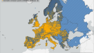 Distribution of annual MPW generation over total land surface area. Modelled cells were classified by rate of MPW generation (0–1, 1–10, …, >10k kg y−1). Total land surface area (blue, expressed in % of total modelled surface) and total MPW generation (grey, expressed in % of total generation) are represented for each cell category
