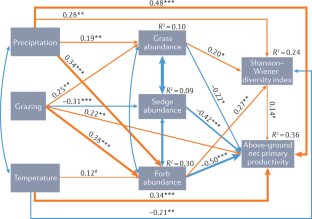 Wang, S. et al. Effects of warming and grazing on soil N availability, species composition, and ANPP in an alpine meadow. Ecology 93, 2365–2376 (2012). This work shows the effects of asymmetric warming and moderate grazing on plant composition, diversity, productivity and their relationships.