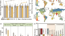 Additionally, UMICs have faced “major challenges” in progressing towards SDGs 9, 15, 16, and 17. Among them, SDGs 9 and 16 experienced setbacks due to COVID-19 impacts, while SDGs 15 and 17 were hampered by pre-COVID-19 development gaps. Therefore, UMICs need more targeted options to address both existing concerns and the effects of COVID-19 in association with different SDGs. For example, any unsustainable supply chain could be limited to reduce the loss of terrestrial biodiversity and deforestation in SDG 1535, and partnerships among government and private sectors in SDG 17 could be strengthened to broadly address the development of the SDGs38. For impacts of COVID-19, especially in regard to the increased authoritarianism in response to COVID-19, governance to strengthen rather than reduce freedom of expression and enhance the transparency of governmental responses to the pandemic are important in continuing to advance SDG 16. In addition, inequalities in UMICs can be affected primarily by unequal economic growth45, which became even more notable during the pandemic as a result of substantial income loss in disadvantaged groups. Moreover, disparity in the possibility of education leads to disadvantaged groups having fewer options, not only to find income sources45 but also to endure the impacts and, more importantly, recover from the impacts of the pandemic. Therefore, policies designed to reduce inequality in social security in terms of both income and education can be very important to moderate COVID-19 impacts on UMICs.