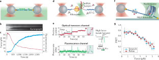 Comstock, M. J., Ha, T. & Chemla, Y. R. Ultrahigh-resolution optical trap with single-fluorophore sensitivity. Nat. Methods 8, 335–340 (2011). This study presents state-of-the-art high-resolution fleezers that combined a time-shared dual optical trap interlaced with a confocal fluorescence microscope.