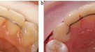 The surface area covered by an RBB retainer has been shown to affect retention. It is accepted that 180° wraparound retainers constitute the ideal design, but this must be balanced with the demand for aesthetics. Retainers on posterior teeth may be extended to include coverage of the palatal and lingual cusps and a proportion of the occlusal surface (Fig. 2) to increase the surface area and improve retention. If necessary, the surface area for bonding can be maximised by crown lengthening, either with conventional periodontal flaps or with electrosurgery (Fig. 3). Electrosurgery is particularly relevant for young patients who have short clinical crown heights, a substantial proportion of whom present following orthodontics wearing retainers which can be associated with gingival hyperplasia. If teeth are restored, fillings should be replaced with fresh composite restorations, which will bond more favourably to the resin cement enhancing retention of the bridge.26
