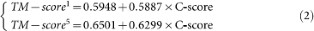 where TM-score1 and TM-score5 are TM-score for the first and best in top five models, respectively. In our benchmark test, the average errors between the estimated and the true TM-scores based on Eq. 2 are 0.0833 and 0.0778 for TM-score1 and TM-score5, respectively.