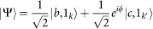where B(x), C(x), A, F and D are amplitude probabilities and |b, 0〉 represents that the atom is in the state |b〉 and the photon number in the waveguide is zero. Under the ansatz B(x) = [θ(−x) + t1θ(x)]eikx and C(x) = t2θ(x)eik′x, we can find the solution of the time-independent Shrödinger equation H|Ψ〉 = E|Ψ〉. The stationary state evolves with time as |Ψ(t)〉 = e−iEt|Ψ〉. After calculation43, the transport properties t1 and t2 are obtained as in Eq. (3).