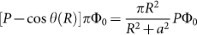 . The calculated flux value is found to coincide (within numerical accuracy) to the analytical prediction of cosθ′(R, s)PπΦ0, where cosθ′(R, s) is given by Eq. (15).