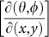 is the Jacobian for the transformation between the Cartesian (x, y) to the spin (θ, ϕ) spaces. Since