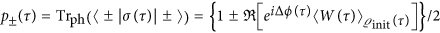 denotes the average of the Weyl operator with respect to this time-evolved phonon density matrix. The respective measurement outcomes are obtained with probabilities