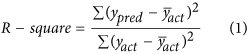 where n is the total number of sample points for predicting, yact is the actual value, ypred is the predicted value of the degree of flaking, as calculated using the model and