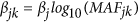 codes the number of the minor alleles for the kth causal SNVs on the jth gene of the ith subject. Cj is the number of causal SNVs on the jth gene, and βjk is the effect size for the kth causal SNVs on the jth gene,