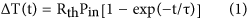 where Rth is the thermal resistance of the recording media, Pin is the power absorbed by the recording media and τ is the thermal time constant needed to load thermally the recording media. The total power absorbed in the recording media can be calculated using the complex Poynting vector theorem and Maxwell’s equations with the Poynting vector given by
