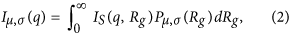 The scattering intensity in the context of the Radius-of-gyration Distribution (RgD) model, Iμ,σ(q), is given by