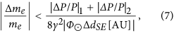 is the solar mass. Substituting this into (6), we obtain the relation between the fractional deviation in the masses and the fractional uncertainty in the measured synchrotron radiation power in two experiments,