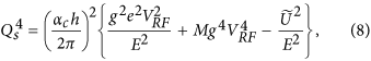 where αc is the momentum compaction factor (measure for the change in the orbit length with momentum), h is the harmonic number of the accelerator (ratio between the RF frequency and the revolution frequency), VRF is the amplitude of RF voltage, g ≈ 1 is a fitting parameter whose role is to account for uncertainties in the accelerating RF system, M~10−7 is a parameter accounting for the fact that the RF voltage is not distributed homogeneously around the accelerator but in four straight sections near to even numbered access points28 (parameter is obtained from simulations) and