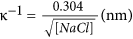 the Debye screening length with [NaCl] the molar sodium chloride concentration38.