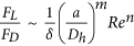, where the exponent m lies between 2 and 3. This force ratio varies exponentially with the particle diameter and suggests that the lift force towards to the inner wall is higher for particles with larger diameter. Therefore, particles with larger diameter tend to be focused closer to the inner wall.