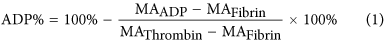 Finally, four TEG parameters, MA, MAADP, ADP% and AA% were measured. All four parameters are calculated by the TEG software.