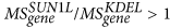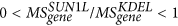 To quantitatively examine the effect of LINC disruption on the mechanosensitivity of individual genes, we applied a two-way Analysis of Variance (ANOVA) to the entire mRNA data set to detect interaction effects between substrate rigidity and SUN1L expression. The analysis revealed 194 genes that exhibited SUN1L-substrate rigidity interactions at a (Bonferroni-corrected) p < 0.05 (Supplementary Table 13). Also, Supplementary Table 14 shows genes that depended on substrate rigidity, but were not perturbed by SUN1L expression. We quantified and compared mechanosensitivity (MSgene) of individual genes by defining it as the fold change in mRNA levels of a gene between stiff and soft substrates (for convenience, fold change <1 was recalculated as −1/fold change). We focused only on the genes identified as statistically interacting between substrate rigidity and LINC disruption from the two-way ANOVA analysis. These interacting genes have two attributes: (1) they are mechanosensitive, and (2) their mechanosensitivity (MSgene) is altered upon SUN1L expression. We further classified these genes based on how their mechanosensitivity, MSgene, changed upon LINC disruption, by computing the ratio of mechanosensitivities in SUN1L cells over KDEL cells (