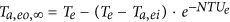 .Ta,eo,∞ represents the outlet air temperature under steady state in °C, Ta,eo,0 the outlet air temperature at the initial state in °C,