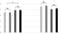 Negative emotion rating scores were entered into a 3 (priming condition: control/expression/unrelated) × 2 (ordinal positions: first/second) repeated measures ANOVAs. The results revealed a significant main effect of priming conditions (F (2, 42) = 4.518, p = 0.033, ηp2 = 0.177). Both priming control (p = 0.029) and expression (p = 0.019) showed lower negative emotion experience ratings than unrelated condition (see Fig. 1). The difference between priming control and expression was not significant (p = 0.152). The main effect of ordinal positions (p = 0.450) and the interaction between priming conditions and ordinal positions (p = 0.101) were not significant.