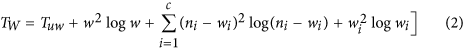 Then, we analyze two particular networks: the one without hierarchical community structure, and the other one with hierarchical community structure of many communities which possess the same number of vertices, edges, intercommunity vertices, ISP-vertices and ISP-edges. For the former one, the whole network is a community, and thus the number of community is equal to 1 and w = 0, Tuw and Tw reach the maximum value at (Tuw)max = mn and (Tw)max = mn + n2log n, respectively. For the latter one,