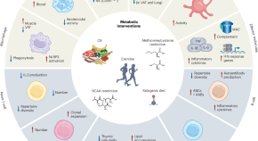Kim and Dixit review the hallmarks of immune aging with a focus on the interplay between metabolism and immune aging. They highlight metabolic pathways as potential therapeutic targets to improve immune function and organismal health in aging.
