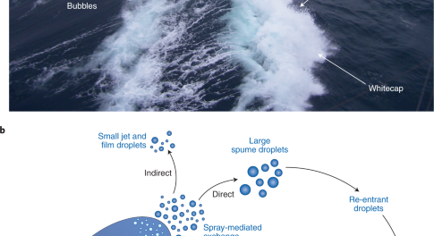 Sea spray droplets contribute to the exchange of gases between the oceans and atmosphere. Accounting for this spray-mediated pathway may provide more accurate modelling of air–sea interactions and the ocean response to climate change.