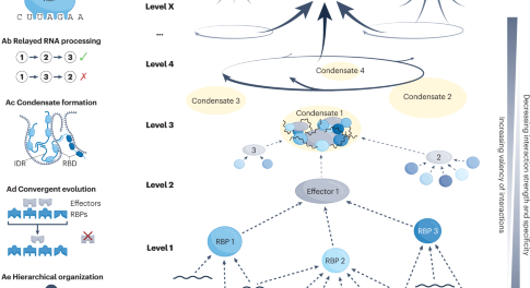 This Review surveys the known mechanisms of communication between RBPs and their effectors and their roles in reducing the complexity of RNA networks. The authors review the emerging roles of RBP–effector interactions in the control of RNA processing and regulation of biological outcomes, and their contribution to human health and disease.